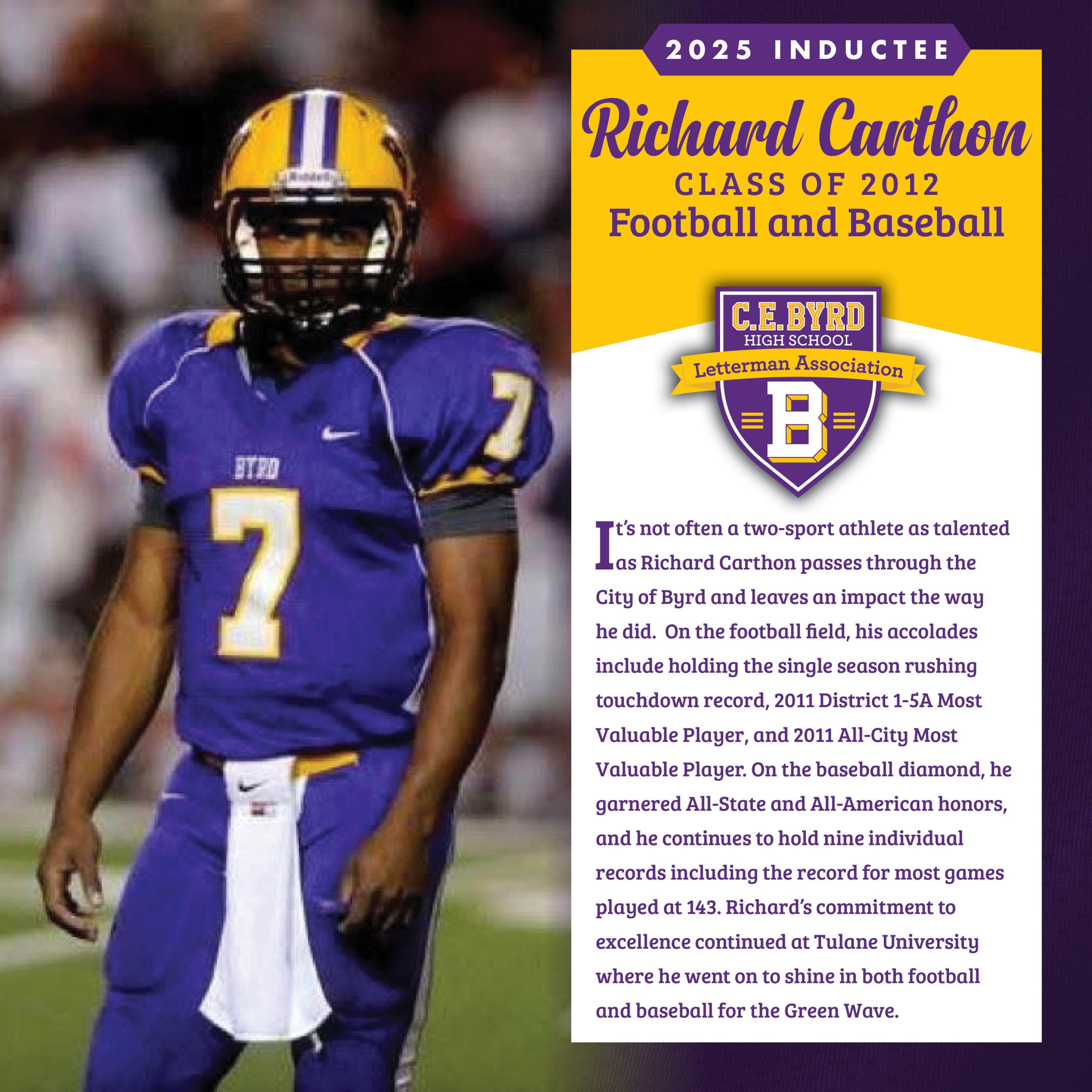 As a part of the Centennial Celebration, the C.E. Byrd Letterman’s Association is pleased to announce thirteen new inductees into the C.E. Byrd Athletic Hall of Fame. This prestigious recognition is reserved for those alumni who not only excelled in their respective sports but did so while also demonstrating the finest values of leadership, sportsmanship, integrity, and dedication that define what it means to be a Yellow Jacket. The legacy that these thirteen alumni have left behind has paved the way for countless student athletes to follow in their footsteps. We are so proud to acknowledge the impact and contributions that these thirteen individuals have made on the City of Byrd.